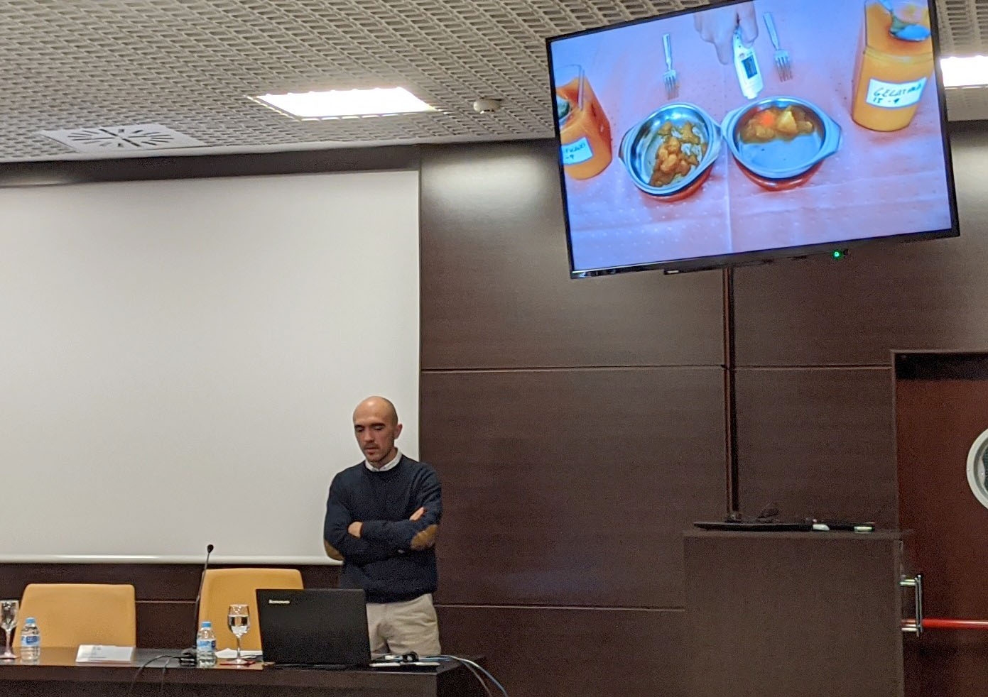 Jaime Mora, jefe de Cocina, cerró la jornada explicando cómo se ejecutan en la cocina todas las instrucciones del resto del equipo para hacer que la alimentación de los usuarios sea “segura, eficaz y palatable”, siempre “en función del diagnóstico que nos llegue”. Repasó las diferentes texturas en dietas para disfagia, se refirió a espesantes naturales y aditivos y presentó dos elaboraciones con texturas modificadas que pudieron probar los asistentes: consomé modificado y gominolas de vino infusionado.