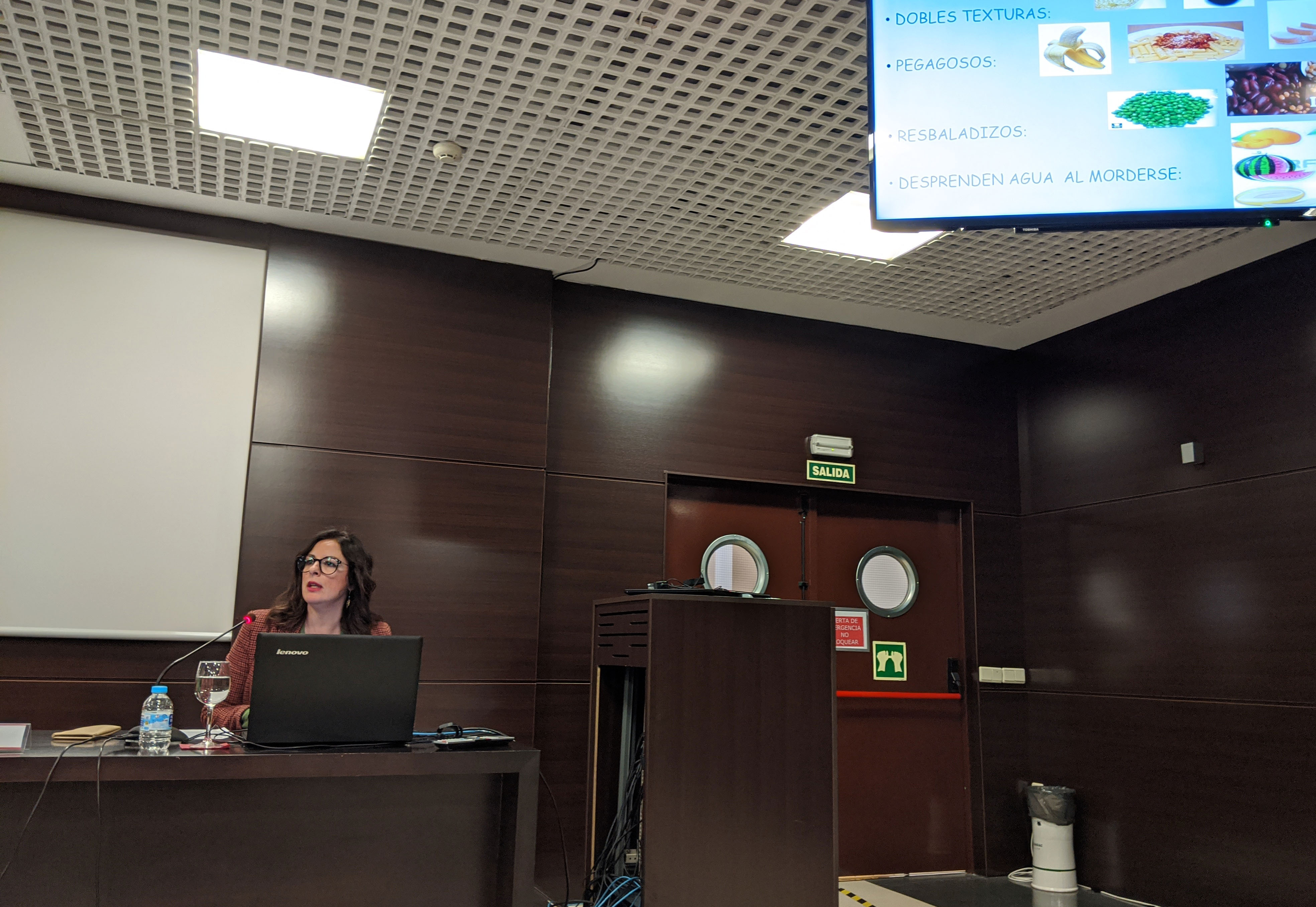 Rosa Dávila, tecnóloga de los alimentos, se centró en la elaboración de una dieta equilibrada para personas con disfagia y puso especial énfasis en que se debe preparar siempre junto al jefe de Cocina, como se hace en Ceadac. Repasó diferentes alimentos y cómo presentarlos para adaptarlos a elaboraciones aptas para usuarios con disfagia. “Sabiendo con qué alimentos podemos contar, las necesidades de nutrición y conociendo cómo hacer una dieta equilibrada se puede elaborar un menú adecuado para estas personas”.